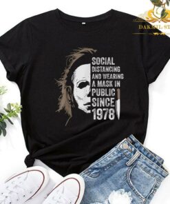 Michael Myers social distancing and wearing a mask In public since 1978 shirt is the product that we spent most of our time to design and produce. will definitely help you to be a fashional person. Buy it here!